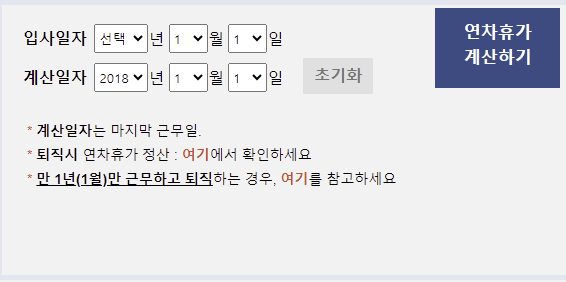 정확한 나의 연차휴가일수가 궁금하다면 연차 계산기를 활용해서 간단하게 계산해 보시기 바랍니다.