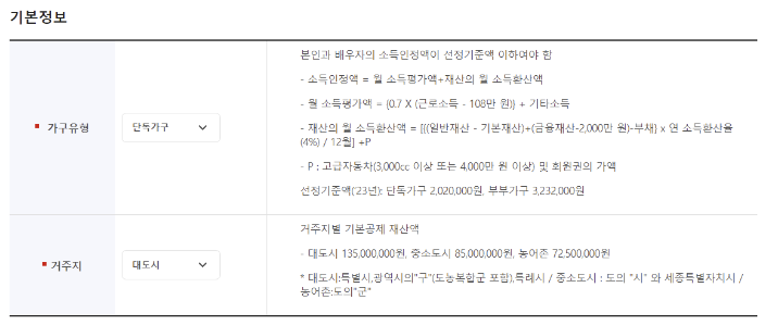 부부의 경우 배우자의 소득과 재산도 합께 입력해야 하며 사업소득은 필요경비 등을 공제한 월 소득을 입력하시면 됩니다.