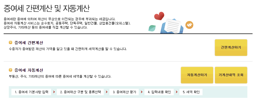 증여세 계산기는 국세청 홈택스에서 제공되며, 다양한 재산에 대한 증여세를 자동으로 계산해 줍니다.
