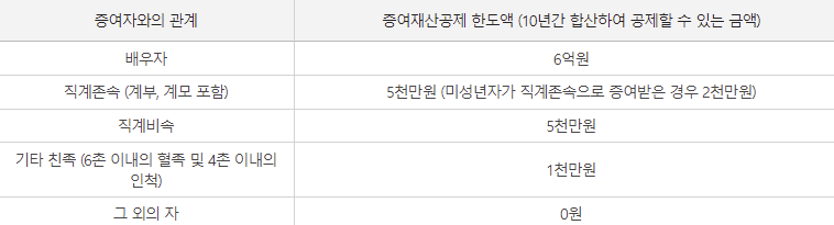 이러한 증여세 면제 한도액을 고려하여 증여를 계획할 때 적절한 금액을 지정하는 것이 중요합니다. 또한, 증여세 면제 한도액을 넘어서는 경우에는 해당 금액에 대해 증여세가 부과될 수 있으므로 주의해야 합니다.