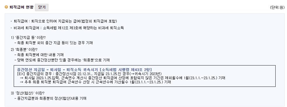 이에 국세청 홈택스에서는 퇴직금 세금의 계산을 쉽게 할 수 있도록 퇴직금 세금 자동계산을 제공하고 있습니다.