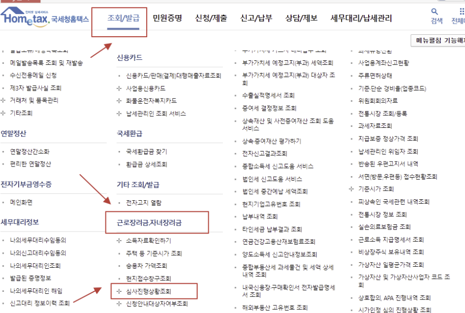 근로장려금 심사 진행 상황 조회하는 방법으로는 국세청 홈택스 홈페이지에서 근로장려금 심사 진행상황 조회를 통해서 바로 확인이 가능합니다.